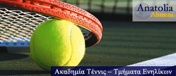 Θα θέλαμε να σας ενημερώσουμε ότι ο Σύλλογος Αποφοίτων του Αμερικανικού Κολλεγίου Ανατόλια διατηρεί τα τελευταία 16 χρόνια τμήματα ακαδημιών τέννις για παιδιά ηλικίας 4-17 ετών, αλλά και για ενήλικες. Τα τμήματα διαμορφώνονται με βάση την ηλικία και το επίπεδο και δεν ξεπερνούν τα 6 άτομα για τα παιδικά τμήματα και τα 5 άτομα για τους ενήλικες.