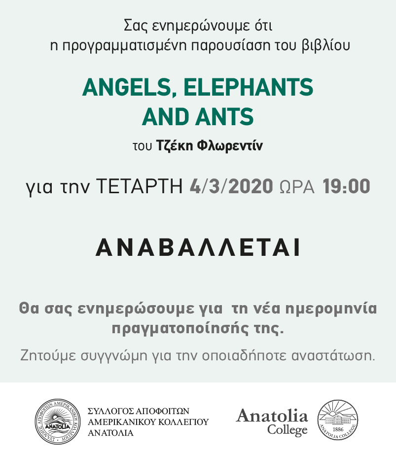 Uncategorized ΑΝΑΒΟΛΗ παρουσίασης βιβλίου «ANGELS, ELEPHANTS AND ANTS» του Τζέκη Φλωρεντίν 27 Φεβρουαρίου 2024 Posted by FlipAdmin 27 Φεβ
