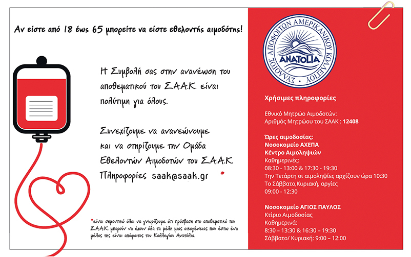ΕΝΙΣΧΥΣΗ ΤΩΝ ΑΠΟΘΕΜΑΤΩΝ ΤΗΣ ΤΡΑΠΕΖΑΣ ΑΙΜΑΤΟΣ ΤΟΥ ΣΥΛΛΟΓΟΥ ΜΑΣ