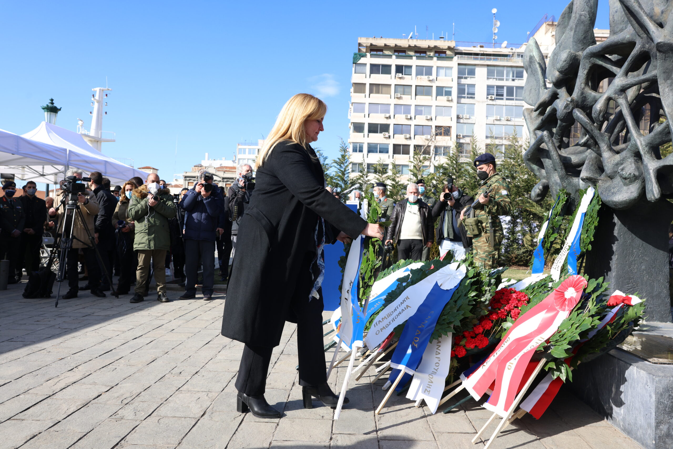 Κατάθεση στεφάνου της Προέδρου του Σ.Α.Α.Κ. Ανατόλια κας Μαρίας Χατζηδημητρίου, στο πλαίσιο της Εθνικής Ημέρας Μνήμης των Ελλήνων Εβραίων Μαρτύρων και Ηρώων του Ολοκαυτώματος.