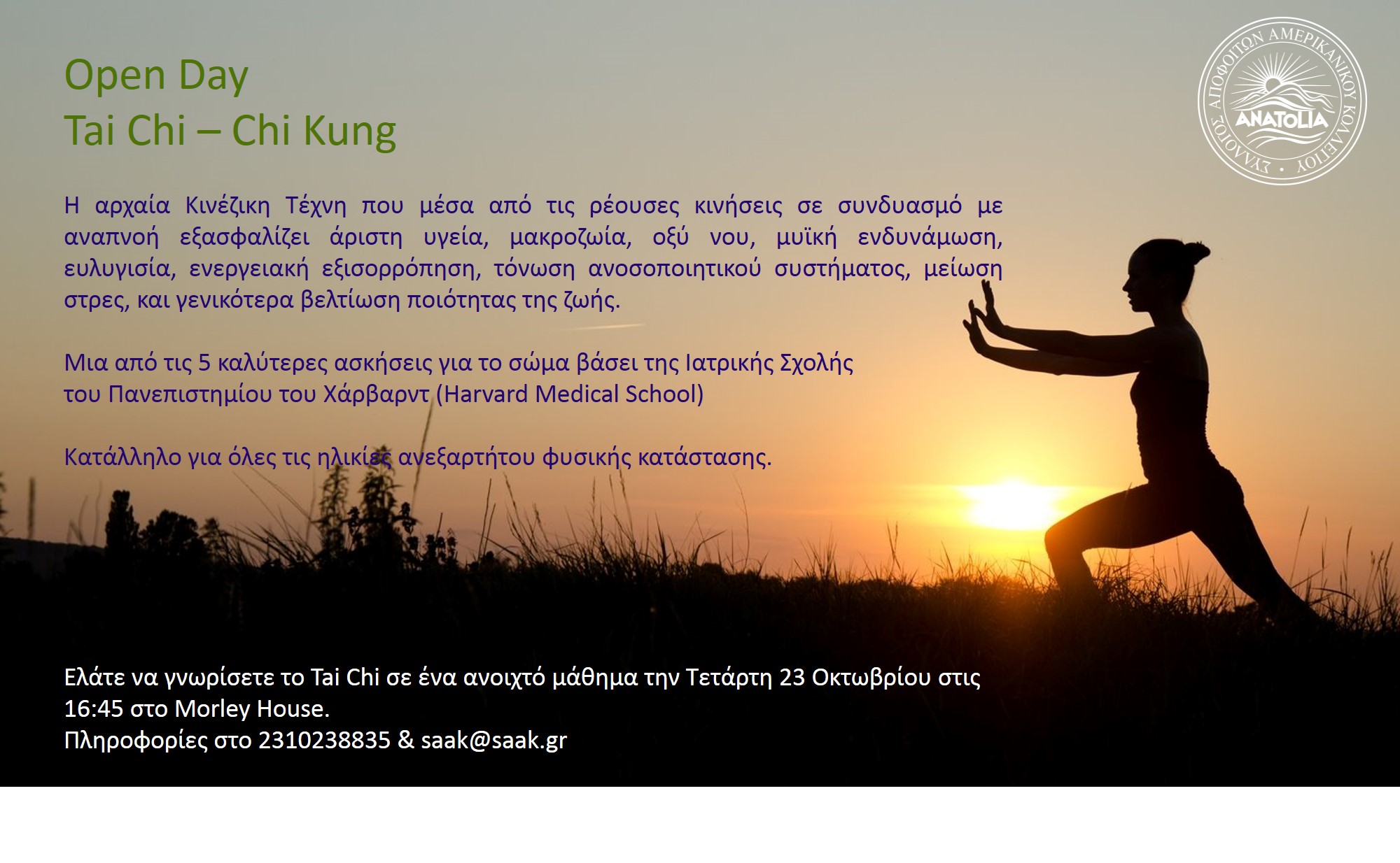 Ελάτε να γνωρίσετε το Tai Chi σε ένα ανοιχτό μάθημα την Τετάρτη 23 Οκτωβρίου στις 16:45 στο Morley House.