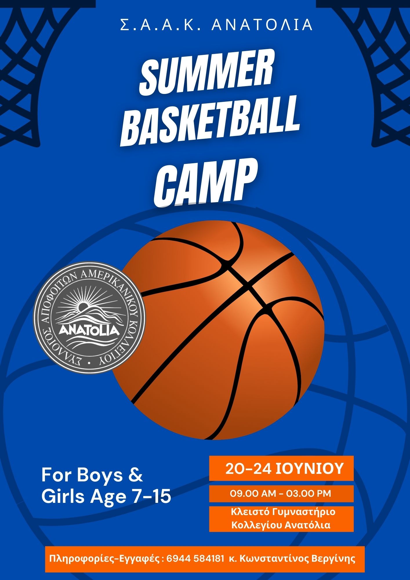 Από 20 έως και 24 Ιουνίου 2022 θα πραγματοποιηθεί το καθιερωμένο SUMMER BASKETBALL CAMP του Σ.Α.Α.Κ. Ανατόλια.