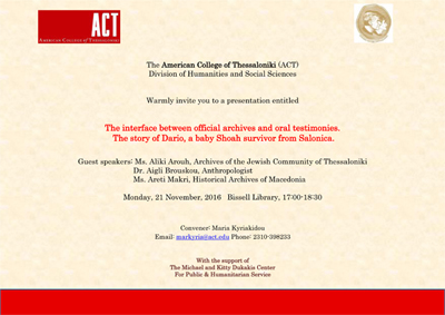 The interface between official archives and oral testimonies. The story of Dario, a baby Shoah survivor from Salonica.